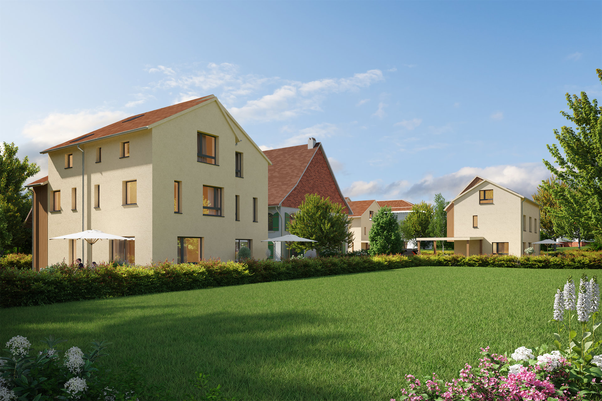 Ces villas, d’une surface PPE allant de 156 à 187 m², séduisent par leurs beaux volumes, leur luminosité et l’utilisation de matériaux de qualité. Chaque intérieur a été soigneusement pensé afin de proposer des espaces modernes, confortables et parfaitement fonctionnels. Les extérieurs, généreux et aménagés avec soin, invitent à profiter pleinement des beaux jours.